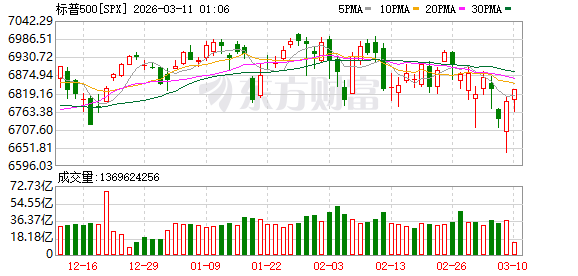 北京时间3月10日凌晨,美股三大指数尾盘直线猛拉,截至收盘,道指涨0.50%,标普500指数涨0.83%,纳指涨1.38%。当天盘初,道指一度大跌近2%,纳指、标普500指数一度跌超1%。