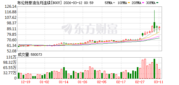 当天,国际油价坐上了刺激的“过山车”。周一亚盘时段,布伦特原油一度暴涨30%,至约120美元/桶。后因美国总统特朗普称战争可能很快就会结束,国际油价暴跌,作为全球油价基准的布伦特原油期货价格一度跌9%,至约84美元/桶。截止发稿,已回升至93美元附近。