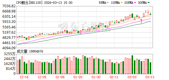 3月11日早盘,算力硬件方向延续升势,CPO概念股集体拉升,瑞斯康达收获两连板,沃格光电涨停,华工科技、长芯博创、天通股份、光迅科技等多股跟涨。