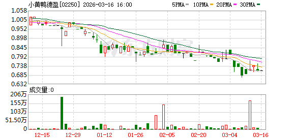 截至3月13日收盘,小黄鸭德盈跌4.05%报0.71港元/股,公司总市值7.16亿港元。