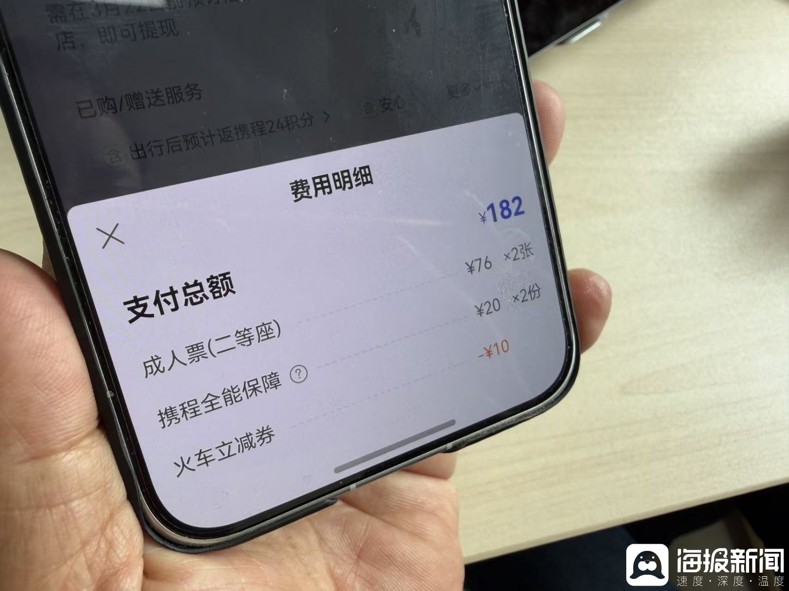 “一个小时的高铁行程76元,一个人多扣20元‘全能保障’,太坑人了!”3月11日,在携程购买高铁票的旅客郑先生向海报新闻记者感叹道。3月初,他购买的两张高铁票,每张被“搭售”了20元的付费服务。