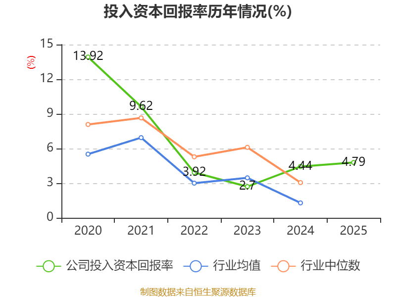 数据显示,2025年公司加权平均净资产收益率为5.93%,较上年同期上升0.37个百分点。公司2025年投入资本回报率为4.79%,较上年同期上升0.35个百分点。