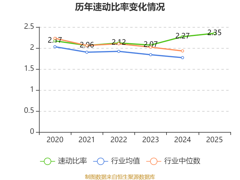 2025年,公司流动比率为2.84,速动比率为2.35。