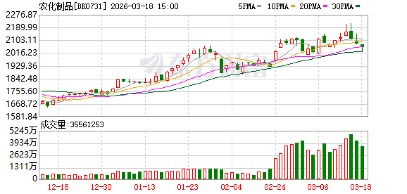 2026年以来,农化制品个股走势较好,仅2股录得股价下跌。北交所上市公司农大科技股价已翻倍,赤天化、金正大累涨超八成,川金诺、潞化科技、广康生化等4股区间涨幅均在50%以上。