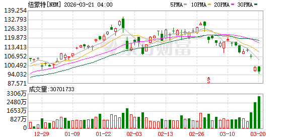 黄金矿业股走低,纽曼矿业跌近7%,哈莫尼黄金跌超6%,科尔黛伦矿业跌超5%,金罗斯黄金跌超5%。