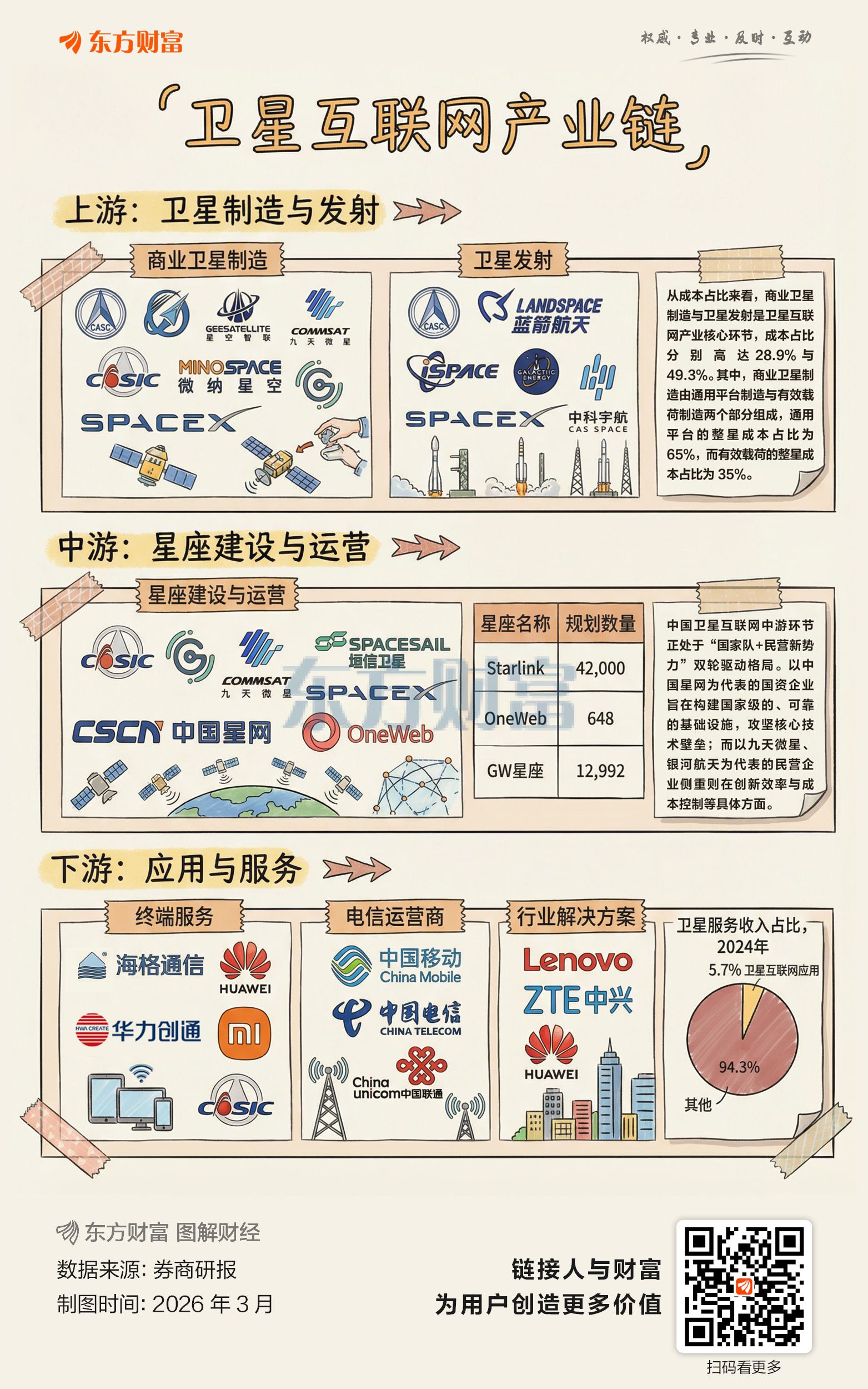 据《经济日报》,今年《政府工作报告》首次单独明确提出“加快发展卫星互联网”,这是国家战略层面的重大升级,表明卫星互联网已成为空天地一体化信息基础设施的核心,是发展新质生产力的关键底座。