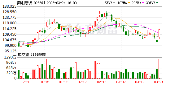 截至3月23日收盘,药明康德A股报87.79元/股,跌3.42%,市值2619.4亿元;港股报102.7港元/股,跌4.02%,市值3064.3亿港元。