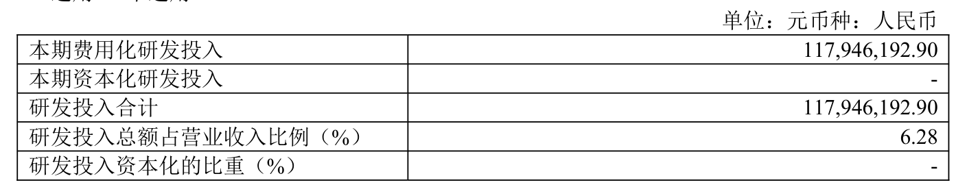 2025年全年,公司研发投入金额为1.18亿元,同比增长13.69%;研发投入占营业收入比例为6.28%,相比上年同期上升0.61个百分点。此外,公司全年研发投入资本化率为0%。