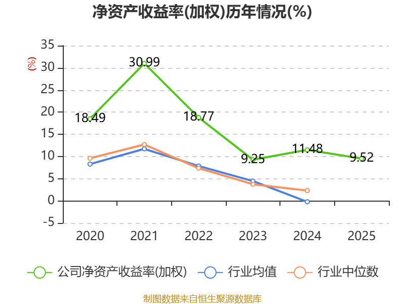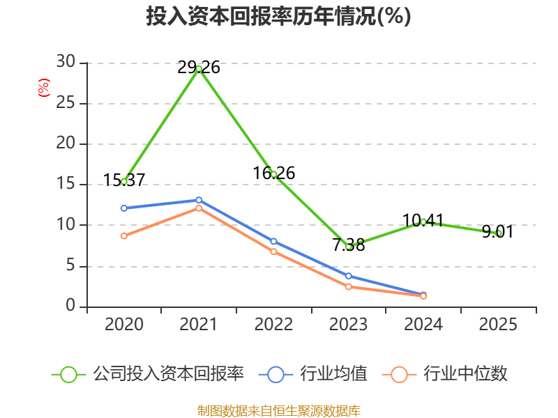 数据显示,2025年公司加权平均净资产收益率为9.52%,较上年同期下降1.96个百分点。公司2025年投入资本回报率为9.01%,较上年同期下降1.4个百分点。