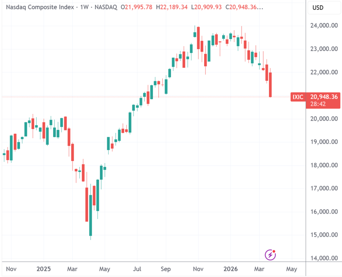 截至周五收盘,纳斯达克指数本周累计下跌3.23%,创去年4月“关税冲击”以来最大单周跌幅。