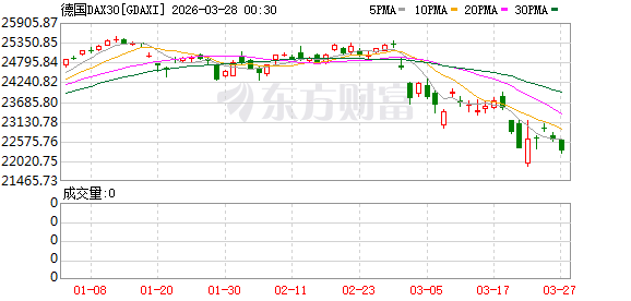 欧股市场:欧洲三大股指03月27日全线下跌。英国伦敦股市《金融时报》100种股票平均价格指数报收于9967.35点,较前一交易日下跌4.82点,跌幅为0.05%;法国巴黎股市CAC40指数报收于7701.95点,较前一交易日下跌67.36点,跌幅为0.87%;德国法兰克福股市DAX指数报收于22300.75点,较前一交易日下跌312.22点,跌幅为1.38%。