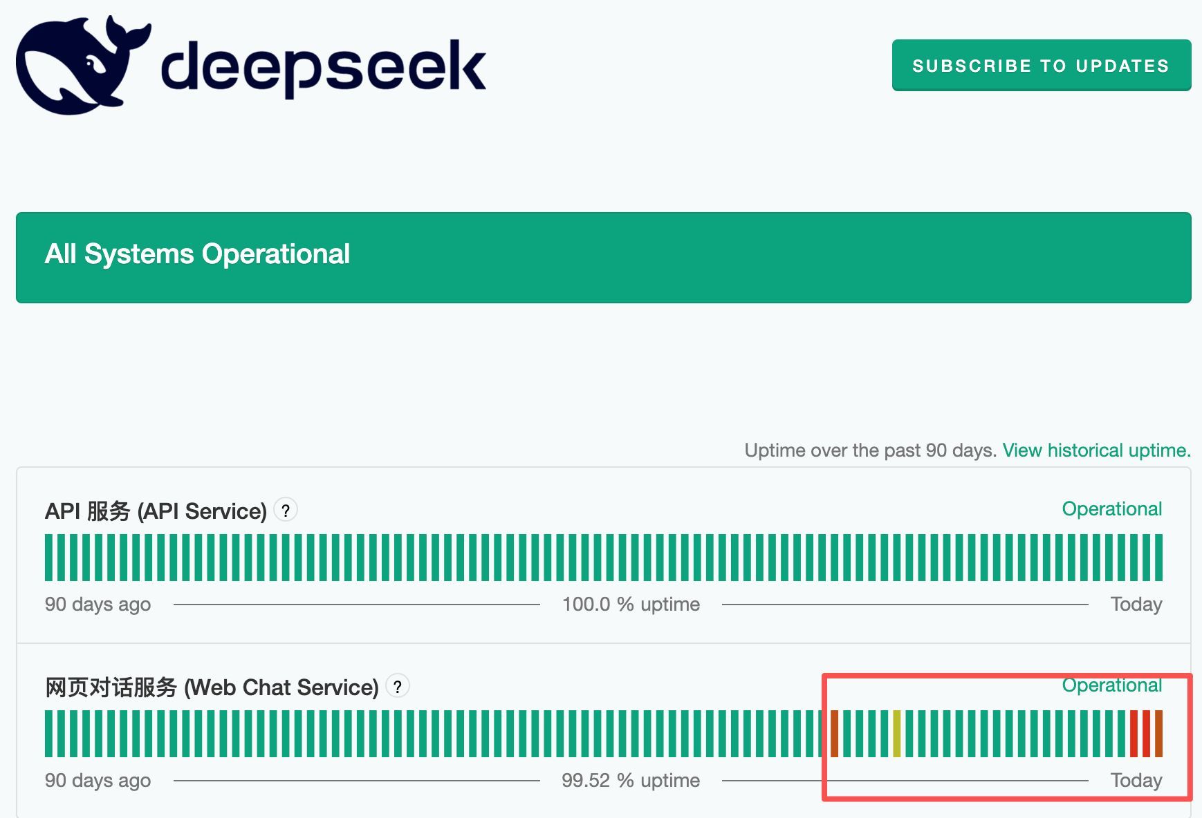 DeepSeek服务状态页面显示,出现故障的均为DeepSeek系统中的网页对话服务(WebChatService)。据了解,网页对话服务是大模型平台面向终端用户的前端交互层,相当于用户与大模型之间的“传菜员”。C端用户可以直接通过对话框体验大模型,不过开发者通过API调用DeepSeek大模型未必对此次宕机感同身受。