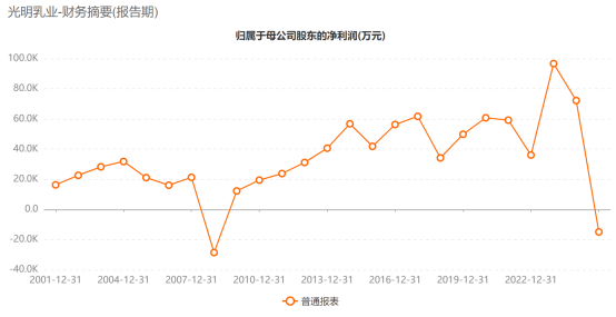 3月30日晚,光明乳业发布的2025年年报显示,公司实现营收238.95亿元,同比下降1.58%;归母净利润为-1.49亿元,上年同期为7.22亿元。这家2002年上市的乳企在2008年首次亏损后,时隔16年再次亏损。