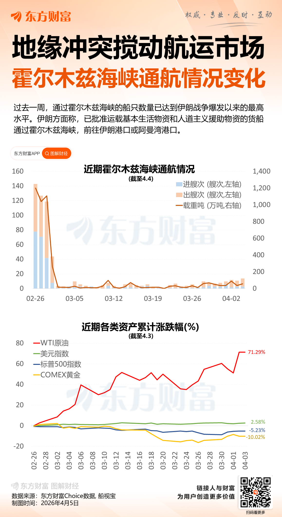另外,当地时间4月4日晚,伊朗方面称,伊拉克船只可通过霍尔木兹海峡。同一天,伊朗已批准运载基本生活物资和人道主义援助物资的货船通过霍尔木兹海峡,前往伊朗港口或阿曼湾港口。