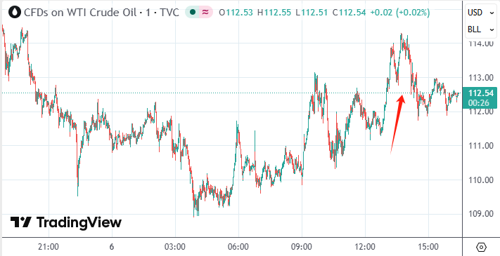 受该消息影响,美国WTI原油期货主连价格一度跳涨至每桶114美元,布伦特原油期货主连价格也升破110美元关口;与此同时,美股三大指数有所回落。