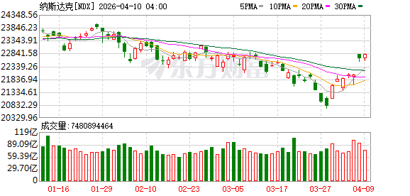 美东时间周四,美股三大指数收盘集体上涨,截止收盘,纳指涨0.83%,标普500指数涨0.62%,道指涨0.58%。其中,纳指、标普500指数录得七连涨。