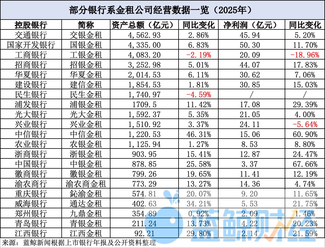 蓝鲸新闻4月10日讯随着上市银行陆续发布2025年报,银行系金融租赁公司的成绩单逐渐浮出水面。
