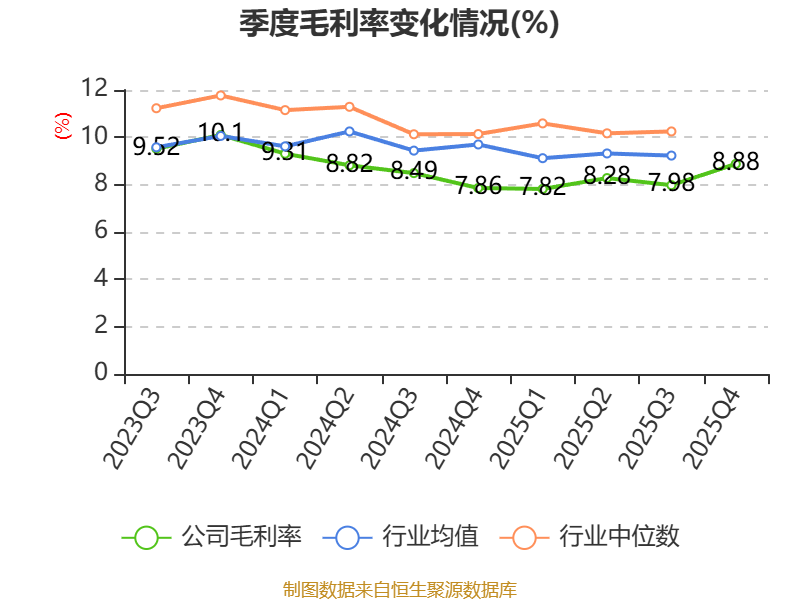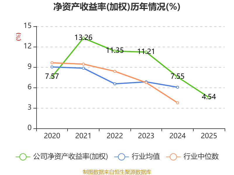 数据显示,2025年公司加权平均净资产收益率为4.54%,较上年同期下降3.01个百分点。公司2025年投入资本回报率为3.94%,较上年同期下降2.07个百分点。