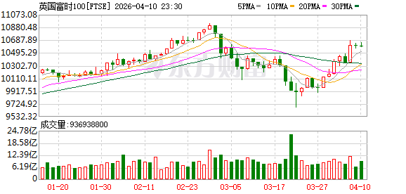 欧股市场:欧洲三大股指04月10日涨跌不一。英国伦敦股市《金融时报》100种股票平均价格指数报收于10600.53点,较前一交易日下跌2.95点,跌幅为0.03%;法国巴黎股市CAC40指数报收于8259.6点,较前一交易日上涨13.81点,涨幅为0.17%;德国法兰克福股市DAX指数报收于23803.95点,较前一交易日下跌3.04点,跌幅为0.01%。