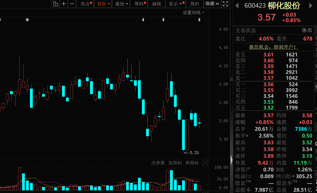 柳化股份(600423)4月10日晚间公告,经财务部门再次测算,预计2025年度归母净利润亏损3000万元,2025年实现营业收入1.37亿元,低于3亿元。公司预计2025年度经审计的利润总额、净利润、扣除非经常性损益后的净利润孰低者为负值且营业收入低于3亿元。