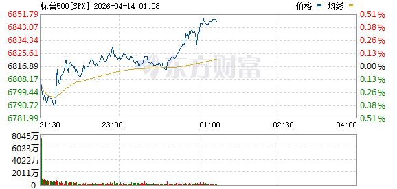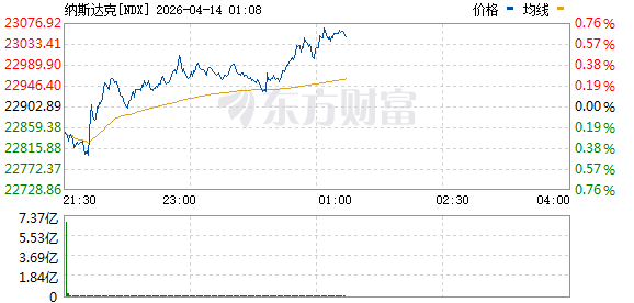 美东时间周一,美股三大指数涨跌不一,截至发稿,道指跌0.13%,纳指涨0.44%,标普500指数涨0.26%。