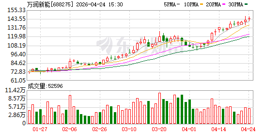 蓝鲸新闻4月25日讯,4月24日,万润新能发布2025年业绩报告。数据显示,公司2025年实现营业收入114.92亿元,同比增长52.76%;归母净利润为-4.58亿元,较2024年度的-8.70亿元亏损收窄;扣非净利润为-4.24亿元,较2024年度的-8.92亿元亏损收窄。