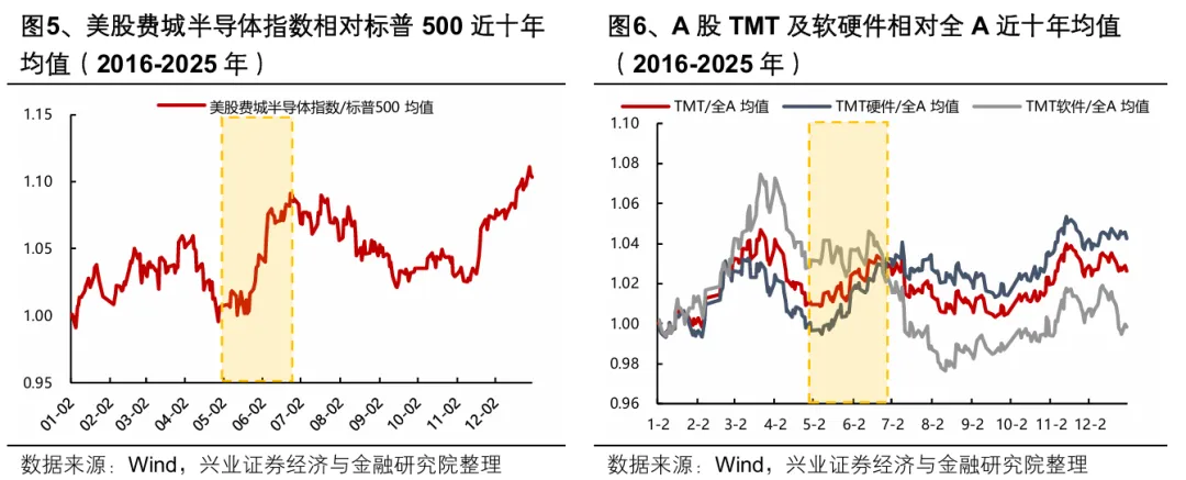 另一方面,5-6月将进入科技海外映射的核心窗口,又来到国内外科技板块胜率相对较高的阶段。5-6月是美国科技产业重要会议(WWDC、COMPUTEX、谷歌I/O开发者大会等)密集召开的阶段,新品和新技术发布的催化下,美股费城半导体指数在该阶段往往能够跑出季节性超额收益,也将对A股科技板块形成有效映射。