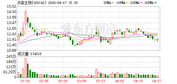 沃森生物公告称,2026年第一季度实现营业收入4.44亿元,同比下降3.98%;归属于上市公司股东的净利润为1.11亿元,同比增长4082.41%。
