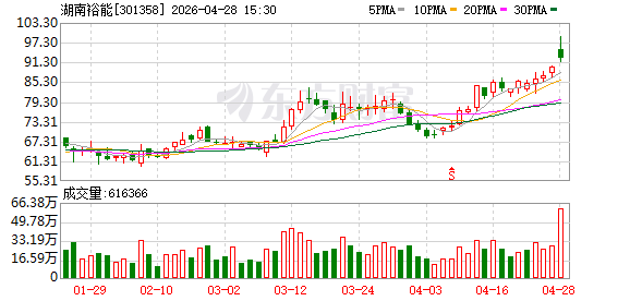 4月28日早盘,湖南裕能(301358)开盘上涨5.8%,盘中一度涨超10%,股价最高达到99元/股,创下历史新高。公司股价强势表现与一季报亮眼成绩不无关系。