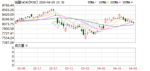 欧股市场:欧洲三大股指04月27日全线下跌。英国伦敦股市《金融时报》100种股票平均价格指数报收于10321.09点,较前一交易日下跌57.99点,跌幅为0.56%;法国巴黎股市CAC40指数报收于8141.92点,较前一交易日下跌15.9点,跌幅为0.19%;德国法兰克福股市DAX指数报收于24083.53点,较前一交易日下跌45.45点,跌幅为0.19%。