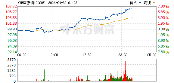 商品市场方面,国际油价大涨,截至发稿,WTI原油期货涨幅扩大至7%,报106.983美元/桶。