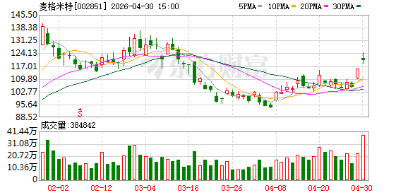 二级市场方面,麦格米特股价今日上涨3.98%,本周涨幅为14.99%。