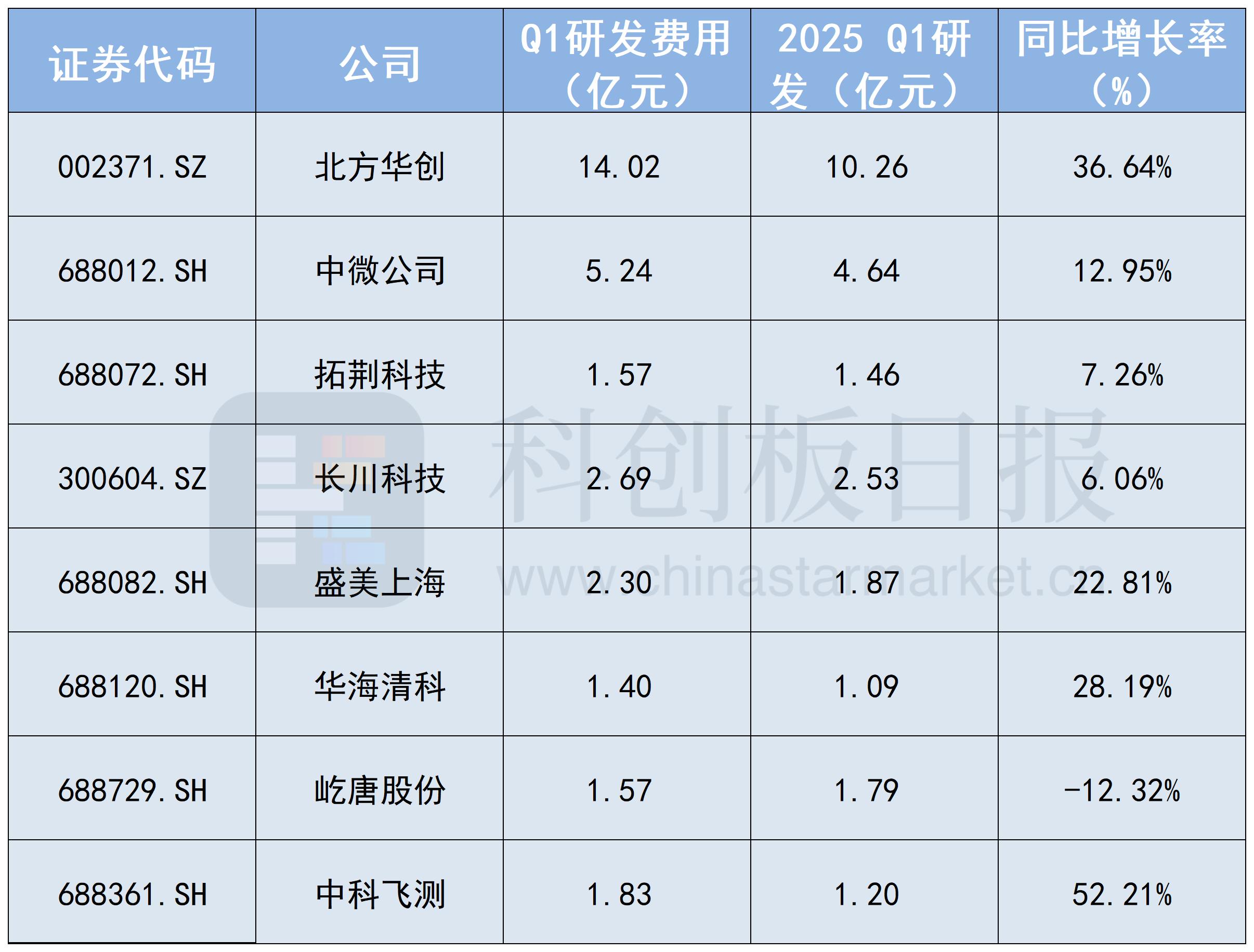 在业绩普增的同时,各公司持续加大研发投入,强化设备工艺以顺应半导体技术演进。数据显示,上述名单内共7家半导体公司在2026年第一季度研发费用均实现同比增长。
